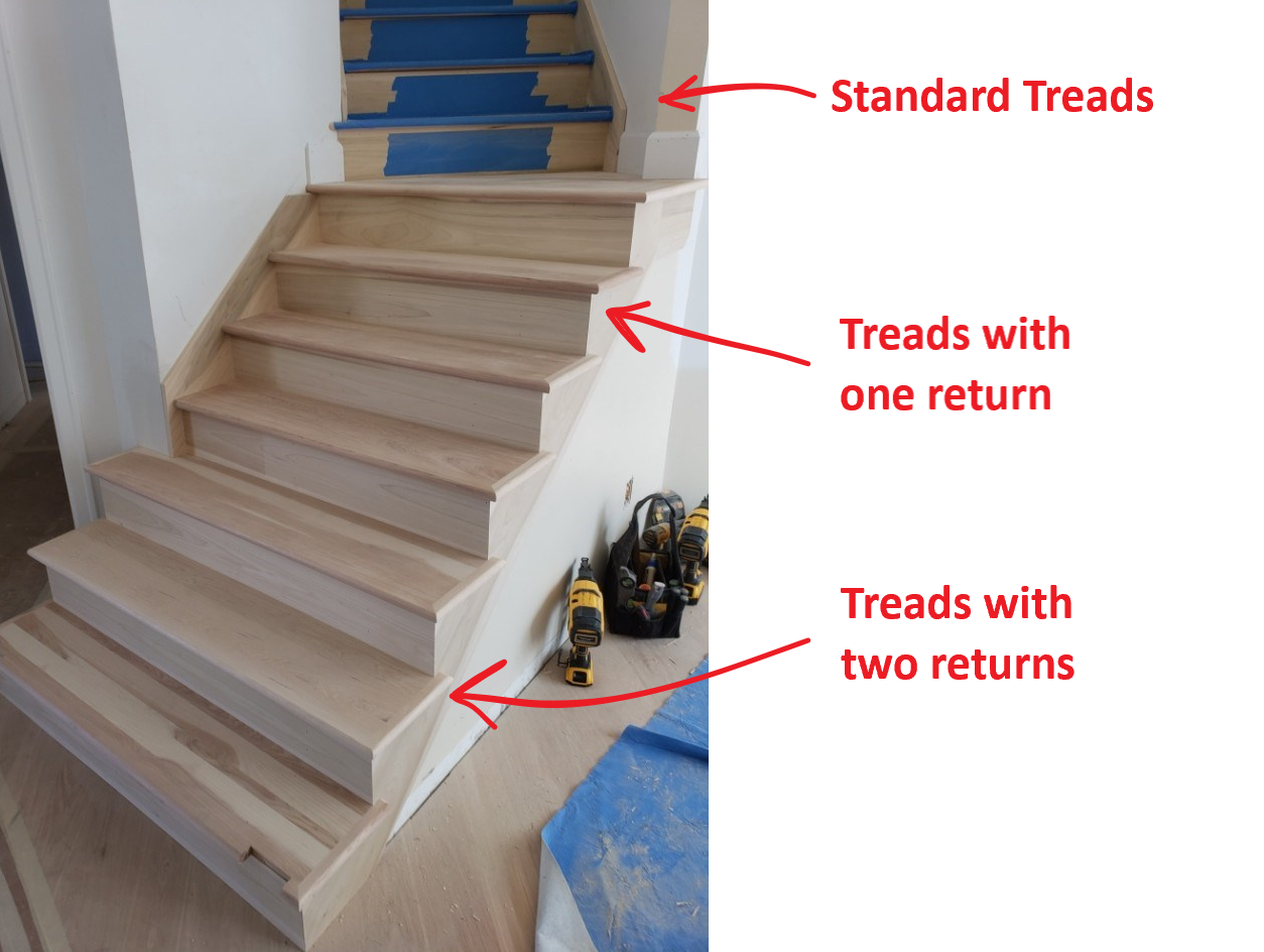 - Double return treads (treads with returns on both sides, order exact to size)