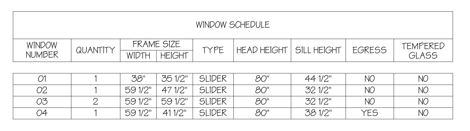 The blueprint often doesn't contain enough information to correctly or fully order a window. Compare the information here to the Example Window Quote below