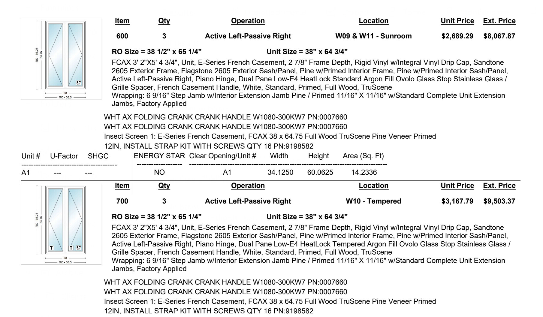 Note the jamb thickness, colors, screen style and color, slide direction, material, hardware specifics, etc.